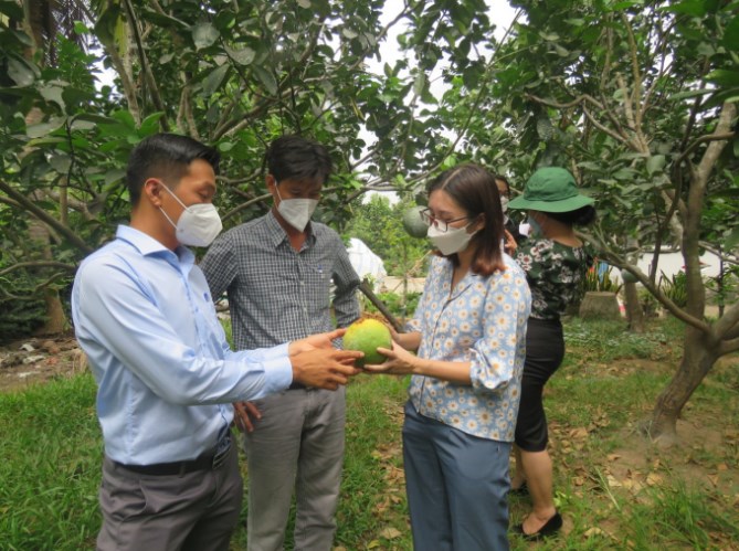 Đoàn công tác của Cục BVTV đã đến tham quan và tìm hiểu về kỹ thuật canh tác bưởi xa danh theo hướng VietGAP của 2 hộ ở huyện Châu Thành: ông Lương Trọng Nghĩa, ấp Thuận Phước, xã Tam Phước (có diện tích 3.800m2) và bà Trần Thị Mừng, ấp Thuận Điền, xã An Hiệp (diện tích 8.000m2).